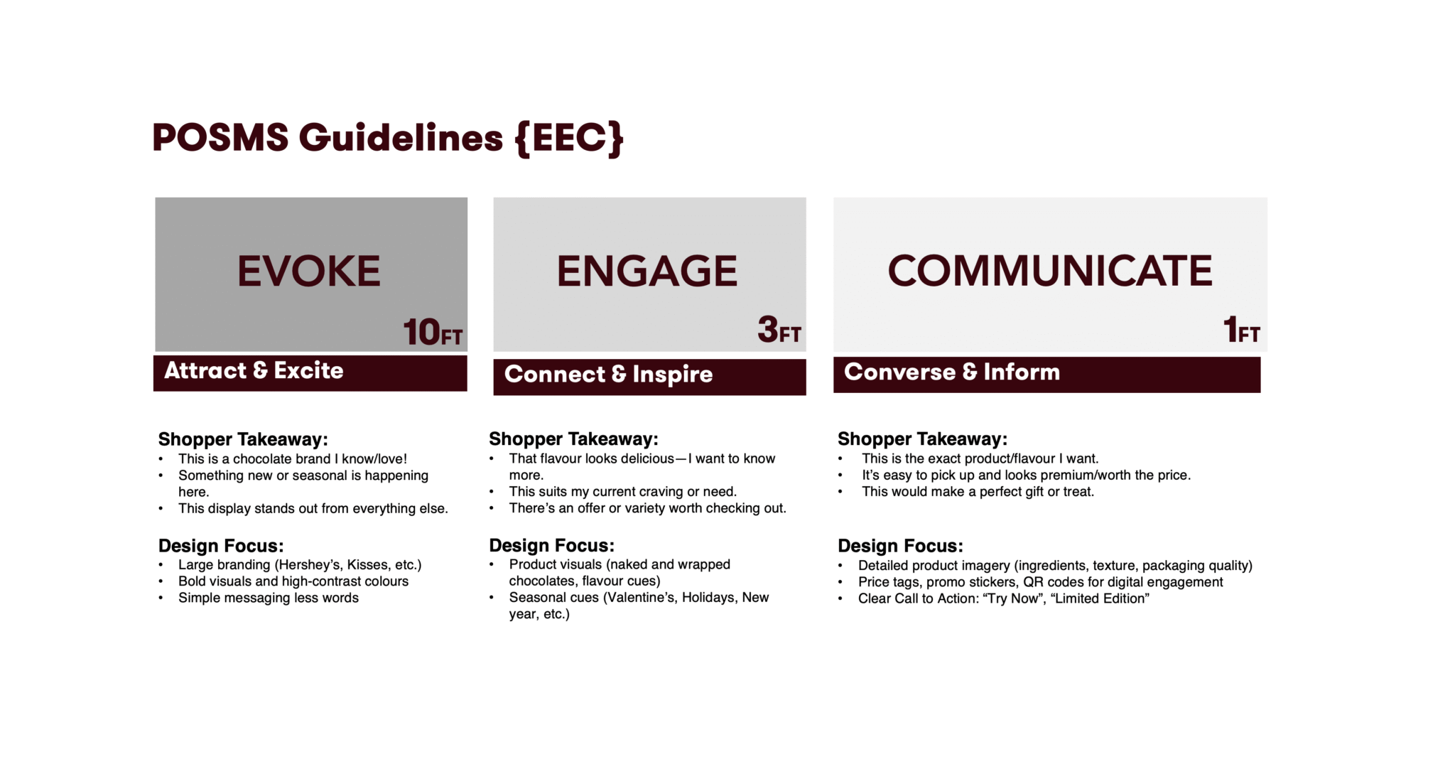 As a retail strategic input, we developed the Asia-Pacific Retail Visibility Guideline Book for HERSHEY’S and KISSES. This included analyzing regional shopper insights, defining a consistent strategic framework for visual identity, and translating it into scalable retail visibility solutions to strengthen brand presence and drive conversion across diverse markets.
